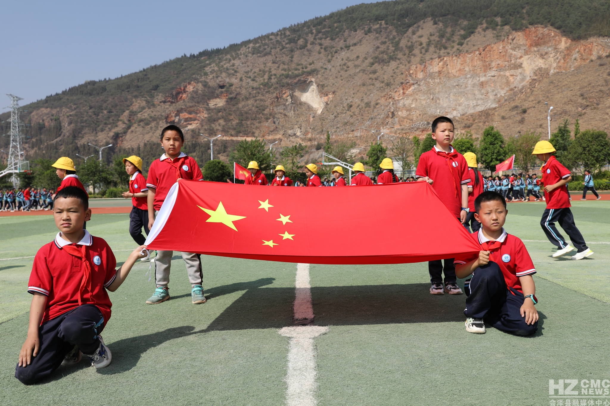 会泽县钟屏小学立足易地搬迁实际,确立以“思源”为核心的校园文化定位,创新体育大课间形式,围绕汉字“中”“国”,词语“思源”“钟屏”首个大写字母“SY”“ZP”及五角星图案进行激情跑操,开展体育大课间活动。