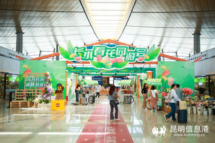 在机场出发大厅,昆明机场将联动第三方平台及场内各品牌商家,开展以“花开长水·满杯春城”为主题的一系列优惠活动,助力每一位旅客的出行。此次活动,不仅对机场航站楼以独具特色的蓝花楹为主要元素进行了装点,还在后中心区搭建了符合春城调性的“长水春花园游会”,为旅客营造了温馨鲜明的出行环境。