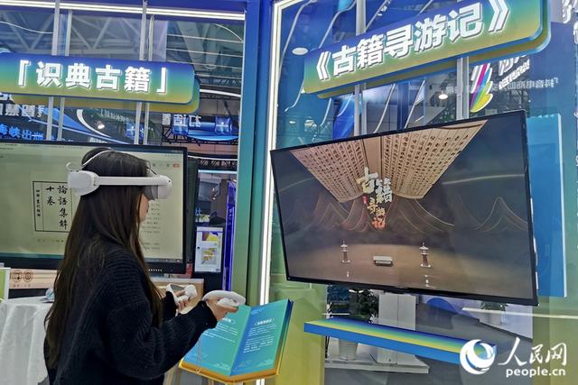 一位市民正戴着VR眼镜,在“古籍寻游记”中遨游古今。人民网 叶青卿摄