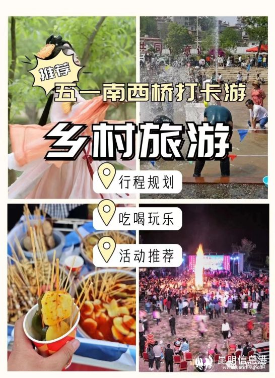 南西桥位于富民县南营村委会的石桥村,“五一”期间将献上“心动五一,为你而来”主题活动,包括自助烧烤、萌宠乐园、射箭游戏等。此外,玩累了可以去明熙苑山庄泡泡野温泉住一晚,卸去一天的疲倦。