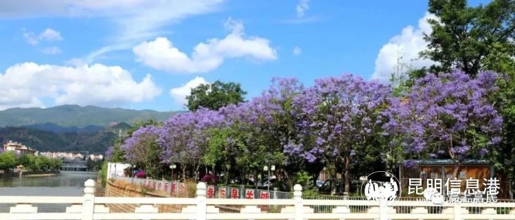 五月的富民县城内,蓝花楹美丽盛放,可以在小城里走走转转,感受慢生活。