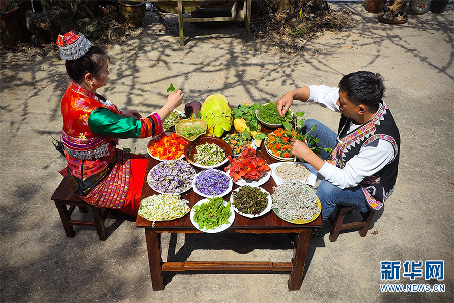 从哀牢山采摘的各类野菜野花(资料图)。新华网发(肖雁雄 摄)
