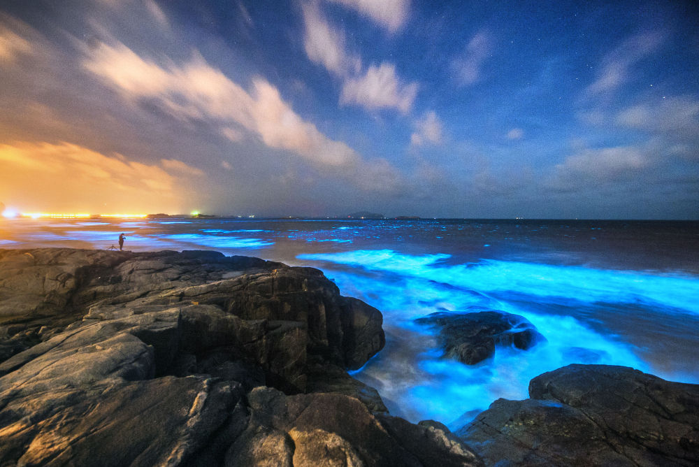 这是在福建平潭拍摄的“蓝眼泪”。(念望舒 摄)