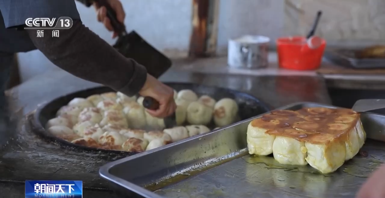 游客 辛先生:早晨5点多起来,就奔着水煎包来的。咬开包子的第一口,原汁原味,这个手艺真是一绝。