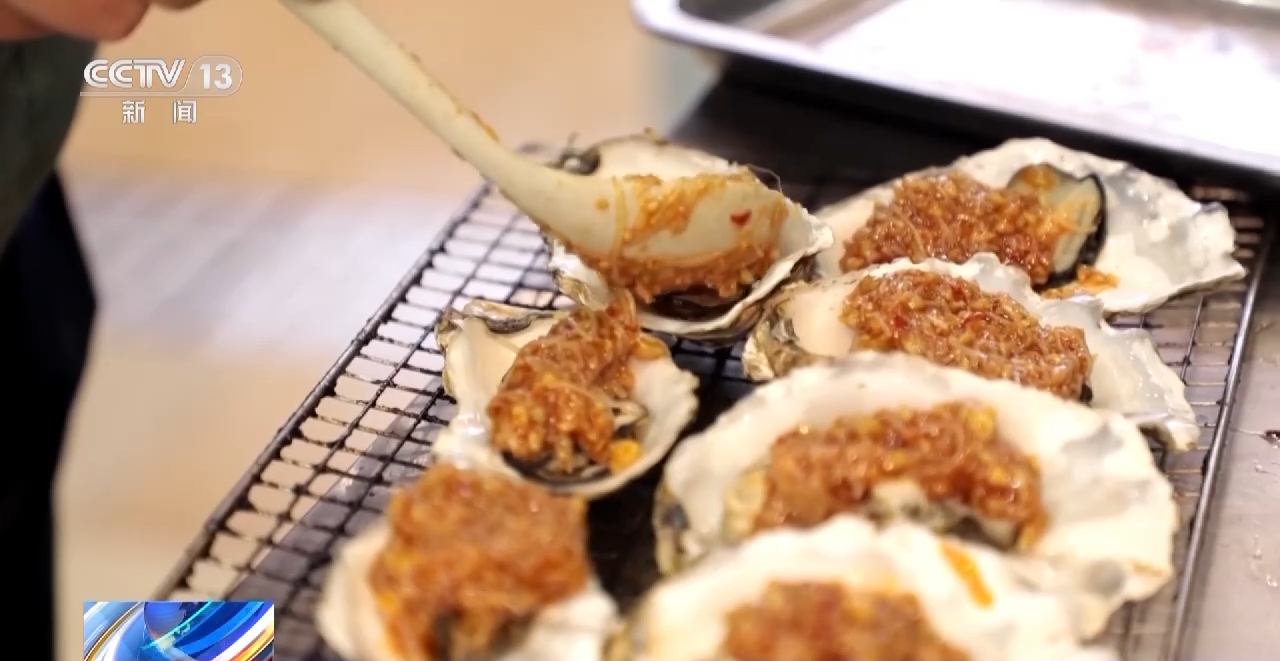 游客钟晟维:在海滩逛完了之后,上来就能感受一下美食街的海鲜,也都特别鲜活,个头也很大。