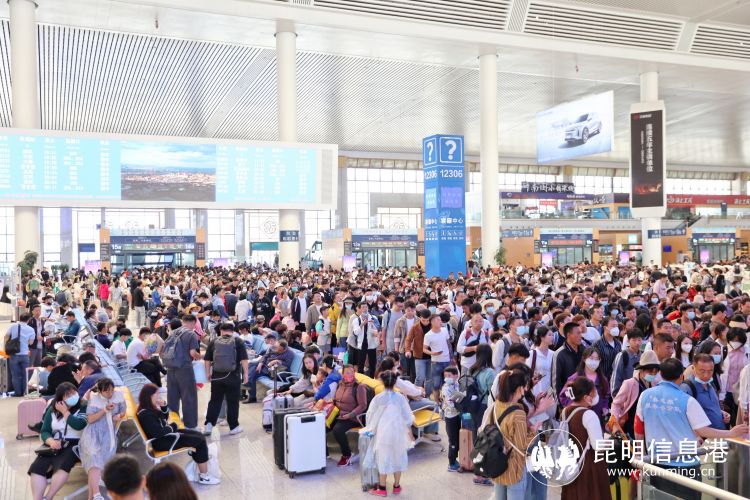“五一”假期首日,昆明南站客流火爆。杨紫轩 摄
