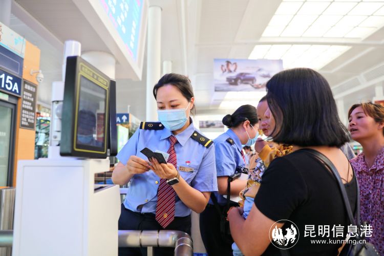 昆明南站认真做好旅客宣传引导和问询解答工作。杨紫轩 摄