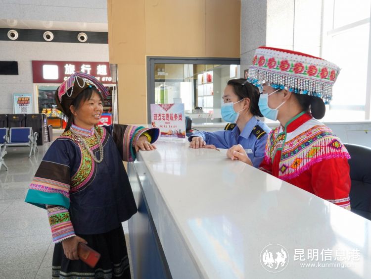 普者黑站设置“双语志愿服务岗”,用心用情服务当地少数民族旅客。石佳 摄