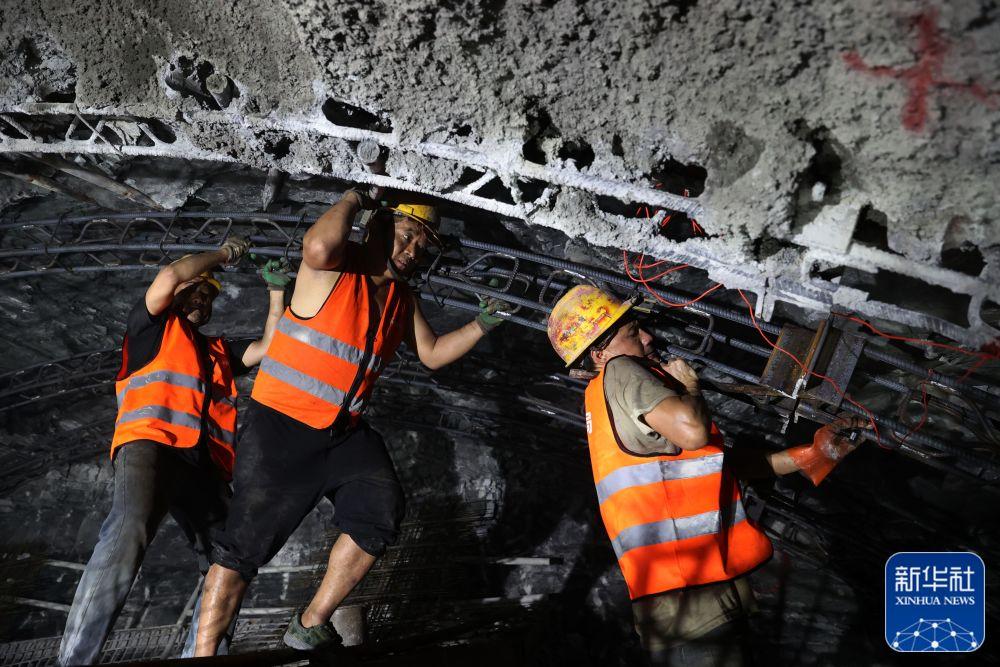 ↑4月29日,中铁八局工人在渝湘高铁重庆黔江段姚家院子隧道施工。新华社发(杨敏 摄)
