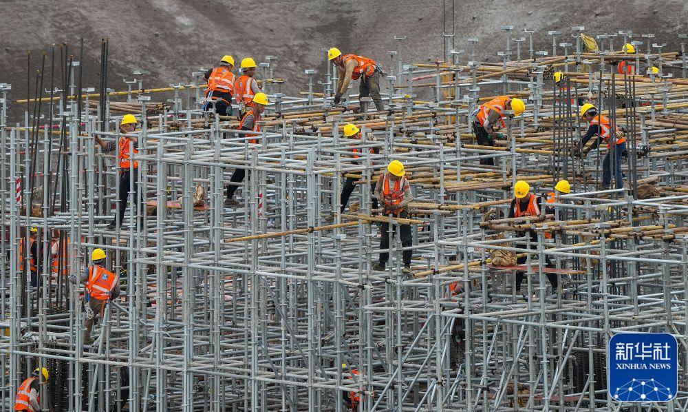 ↑4月29日,建筑工人在山东省枣庄市一处建设工地施工。新华社发(孙中喆摄)