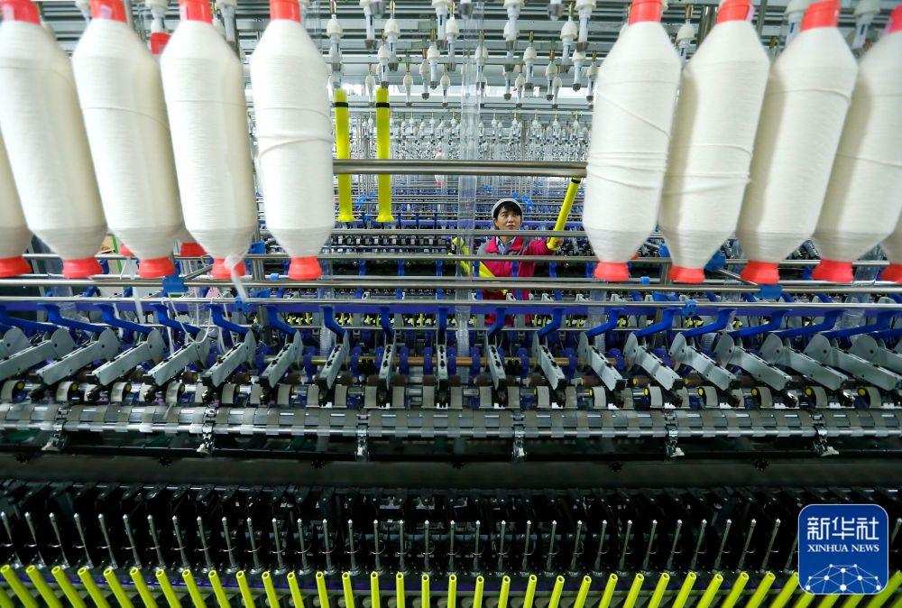 ↑4月29日,技术工人在山东省青岛市即墨区即发龙山工业园的一处数字化智能纺纱工厂调试生产设备。新华社发(梁孝鹏 摄)