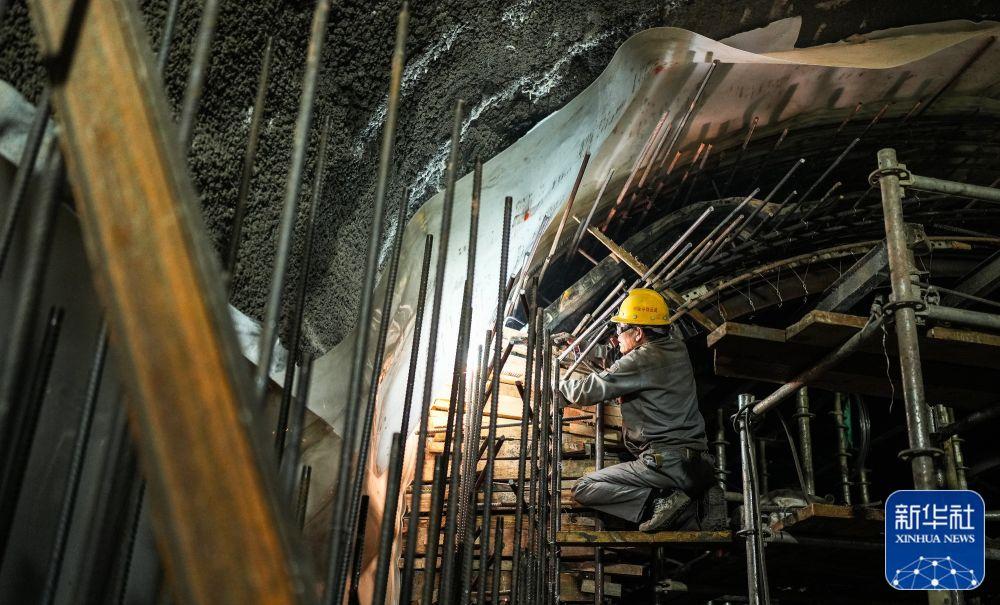 ↑4月29日,中铁十八局工人在贵阳地铁S1线一期工程锦江路站施工。新华社记者 陶亮 摄