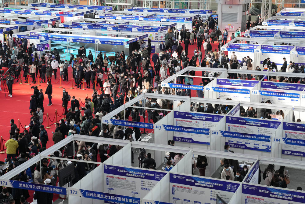 3月18日,黑龙江省在哈尔滨市举办“省、市、县三级联动大型招聘活动暨第四届春风云聘会”。新华社记者 王建威 摄