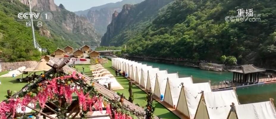 在河南新乡的宝泉大峡谷,景区按照森林主题、峡谷主题,分别打造了两大露营地。在紧跟露营热点的同时,打造出了自己的特色。峡谷露营地依水而建,各式露营打卡帐篷及住宿露营帐篷星罗棋布,游客可以在负氧离子浓度高的峡谷里,吃烧烤,看星空。与峡谷露营地相比,位于山顶的森林露营地,山林间青石子铺装,各类帐篷及露营场景应有尽有,更显户外感。