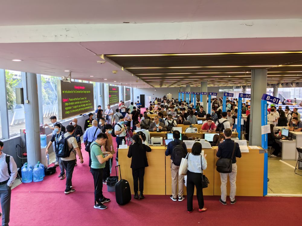 4月16日,正在广交会办证处登记的中外采购商。新华社记者魏弘毅/摄