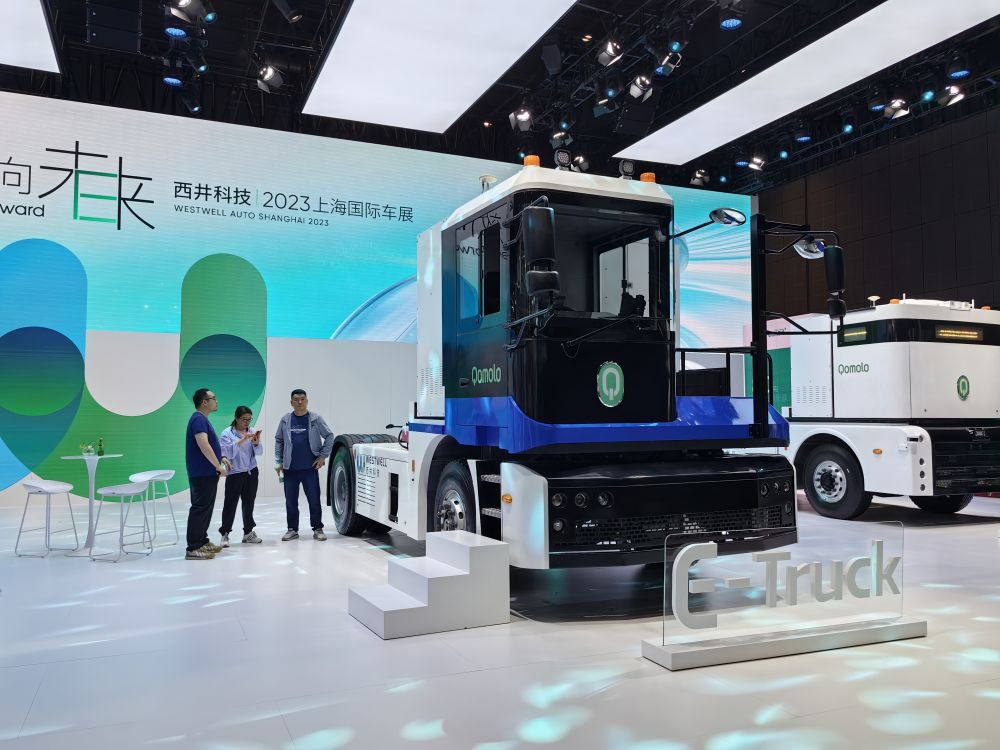 西井科技在车展上展示“可升级自动驾驶”的智能网联新能源重卡Qomolo E-Truck。新华社记者周蕊/摄