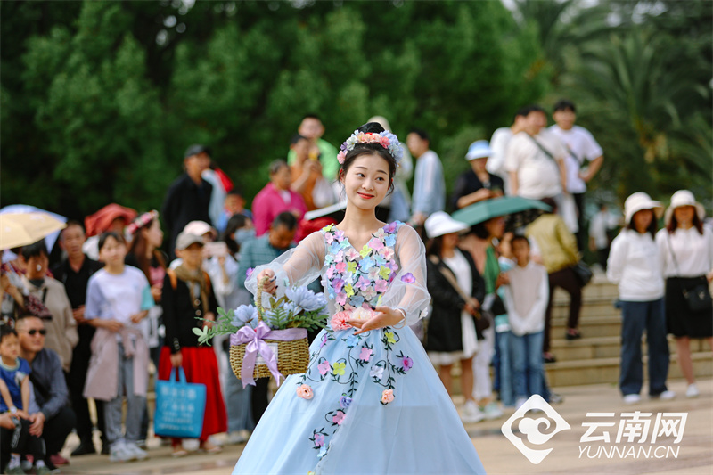 “五一”期间,昆明世博园内奇妙花趣森活节系列活动精彩纷呈,活动以“花”为主题词,涵盖赏花、购花、玩花、吃花、喝花等内容,寓意“花”生好事,让市民游客的假期在世博园内玩出新“花儿”样。
