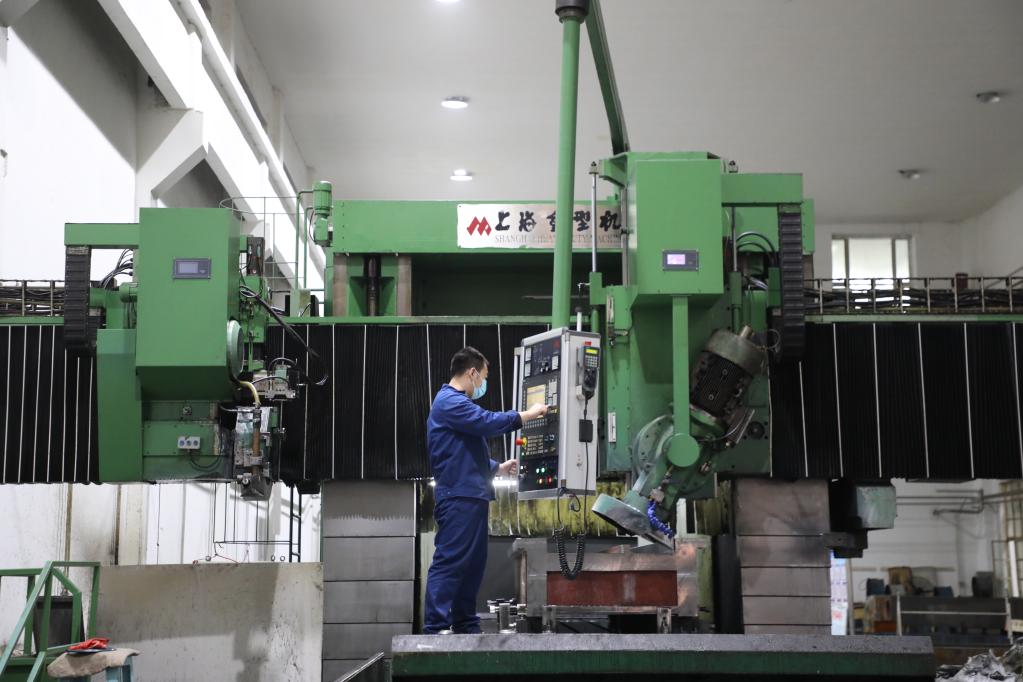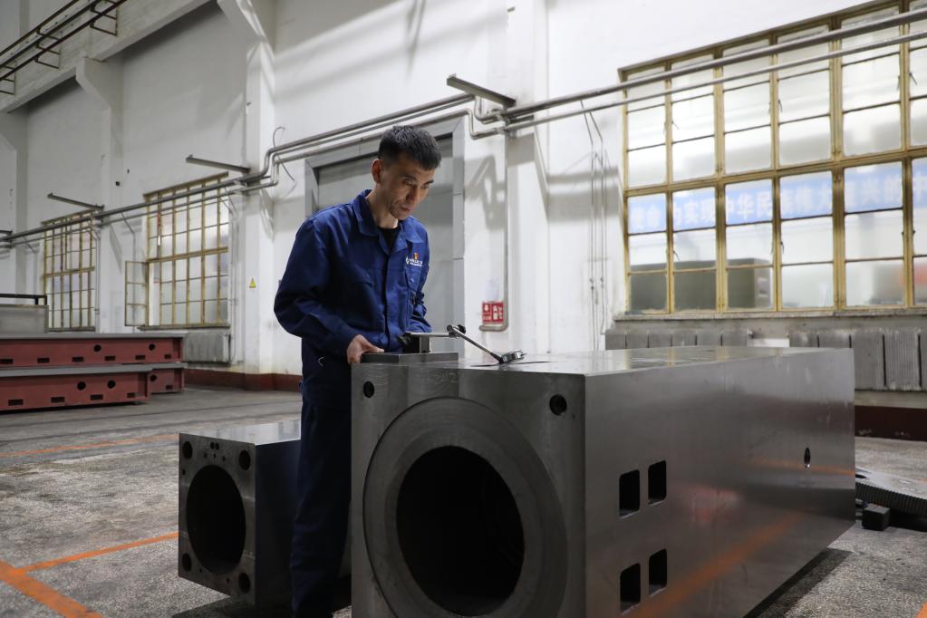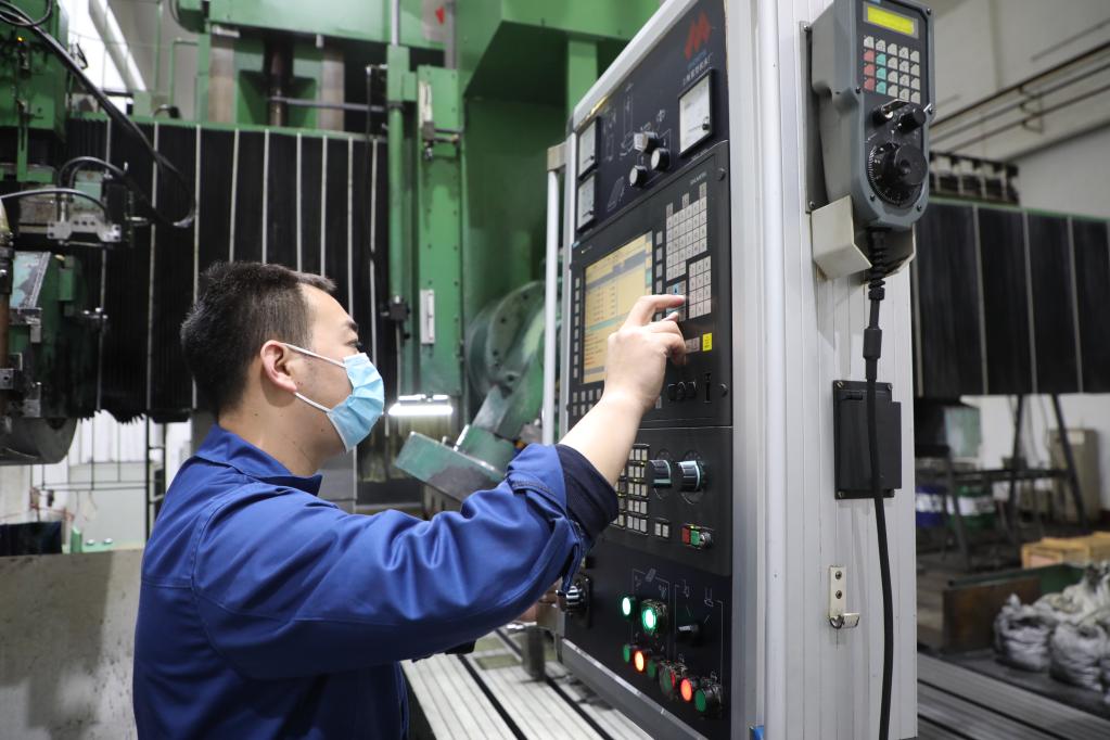 “马恒昌小组”组员正在操控机床。新华社记者唐铁富 摄