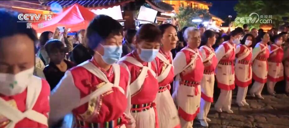 景区推出了一系列展演活动,每天傍晚的篝火打跳非常热闹。夜幕降临,四方游客加入纳西阿妈的舞蹈,每一步、每一跺脚都是满满的快乐,古城的热闹喧嚣要持续一整天。据了解,古城昨日(4月30日)游客接待量达到18万人次,在人数最高峰的时候可以达到实时8.4万人次,丽江古城民宿预订率达到80%。