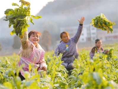 贵州省黔东南苗族侗族自治州岑巩县关庄村芥菜种植基地,村民们在采收芥菜。胡攀学摄(人民视觉)