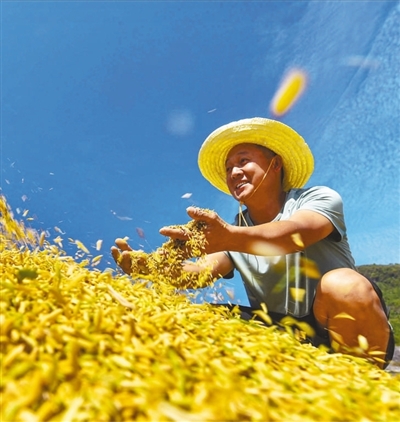 如今,我国国家级种业基地加快布局,由216个农作物基地、262个畜禽育种场、91家水产原良种场组成的“国家队”,供种保障能力由70%提高到75%。节水小麦、优质水稻品种选育取得新突破,农作物良种覆盖率达96%以上,保障了中国粮主要用中国种。