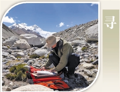 中国科学院昆明植物研究所中国西南野生生物种质资源库采集员在珠峰大本营采集种子标本。 蔡 杰摄(人民视觉)