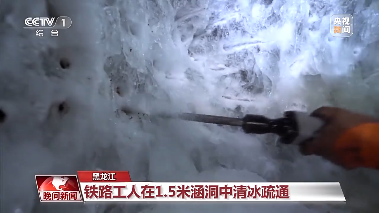 在大兴安岭北部的牙林铁路,最低气温仍在零下。白天冰雪融化流到涵洞中,夜晚结冰就会淤堵排水设施。 这200多公里的线路上,分布了大小80多个涵洞,都得在春融期间打通。铁路工人要在孔径不足1.5米的涵洞中清冰疏通,作业时直不起腰,只能采用蹲、跪、趴等方式破冰作业。
