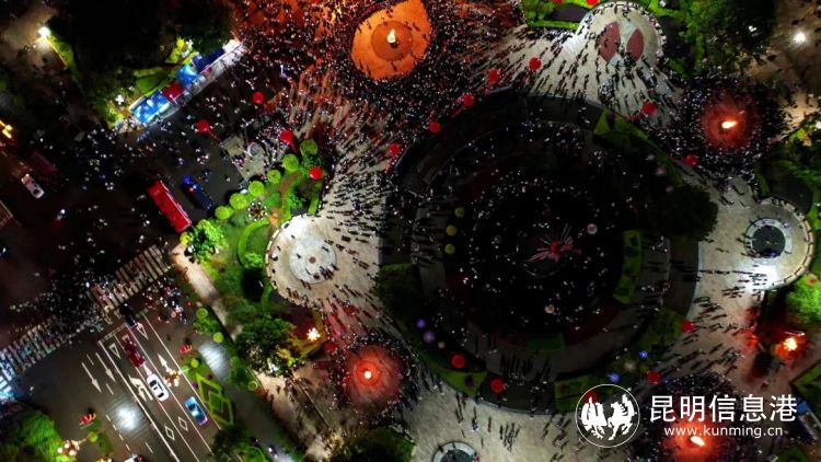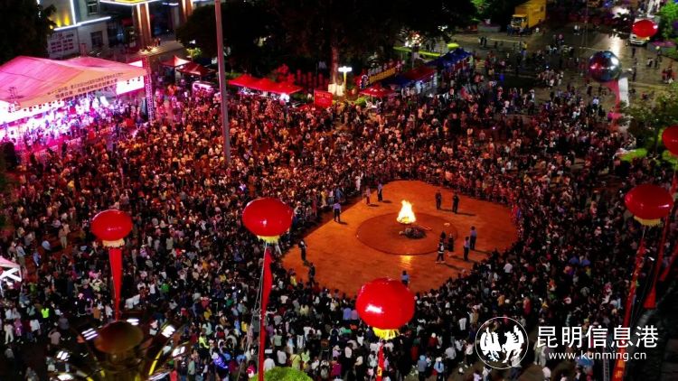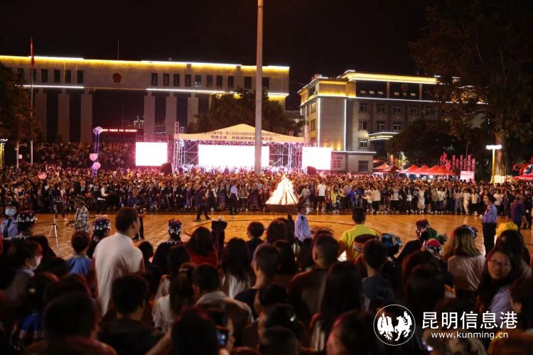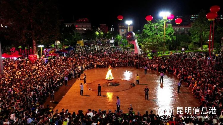 夜幕下的墨江太阳广场,华灯璀璨、人头攒动、热闹非凡,伴随着哈尼曲调的响起,身着节日的盛装的哈尼族和各族同胞围绕在篝火旁,在《阿米车》《三跺脚》《龙纵舞》《扭鼓舞》《再唱阿米车》《哈尼欢歌》……一曲又一曲民族歌曲中,跳着一支支传统舞蹈,好似循转的太阳,万人共舞的场面壮观而震撼。