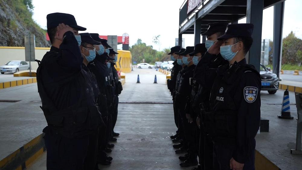 蛮耗边境检查站的执勤民警们。(视频截图)