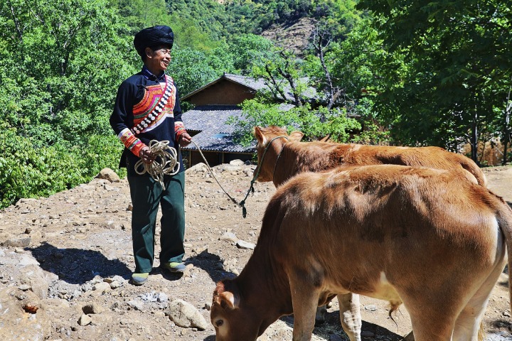 记者来到“北斗村“项目工地时,大爷阿古正在院子里乘凉,他家的房子已经彻底变了模样,一座全新的彝族风情小屋取代了之前破旧的土木房。一棵苍翠的核桃树矗立在角落,斑斑光影洒满整个院子。