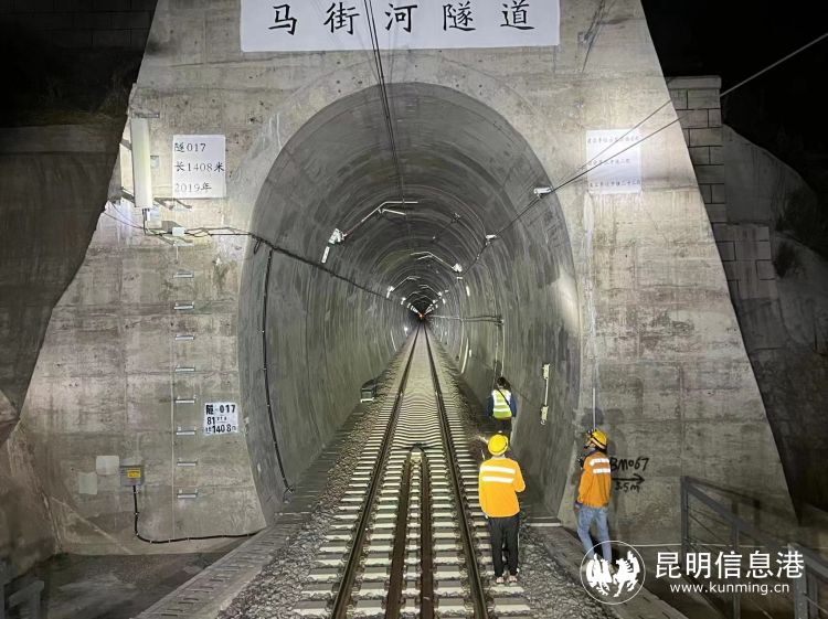 国铁昆明局广通工电段技术人员开展隧道设备检查。徐靖洪 摄