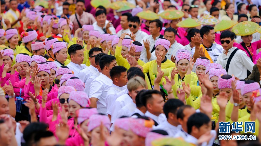 “五一”假期,云南省德宏傣族景颇族自治州盈江县举办泼水狂欢节。5月1日,在盈江傣文化园泼水广场上,数万名各族群众载歌载舞,互相泼水祝福,共享节日的热情与欢乐。新华网发(盈江县融媒体中心供稿)
