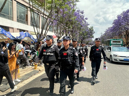 到辖区蓝花楹打卡景点开展安全值守、巡逻防控工作。
