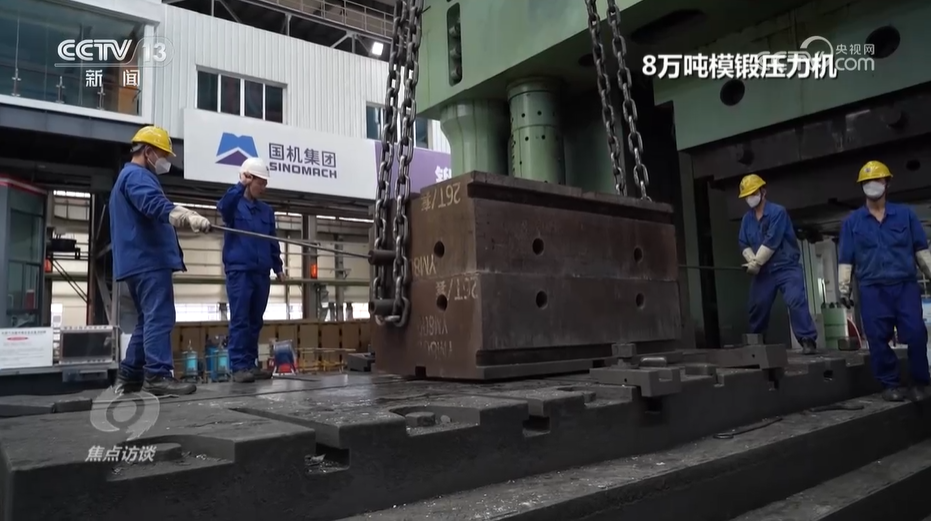 国机集团中国二重万航模锻8万吨模锻压力机模锻工叶林伟:“一个鸡蛋和它破损的临界点就一毫米,如果你停不下来,鸡蛋里面的膜就破了,这就是毫厘之间的掌控。”