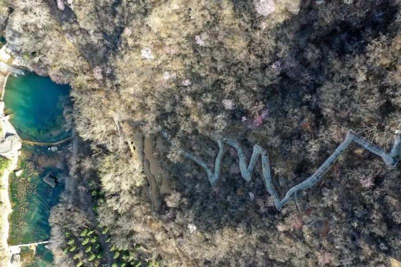俯瞰新修好的旅游步道(3月10日摄)。新华社记者詹彦摄