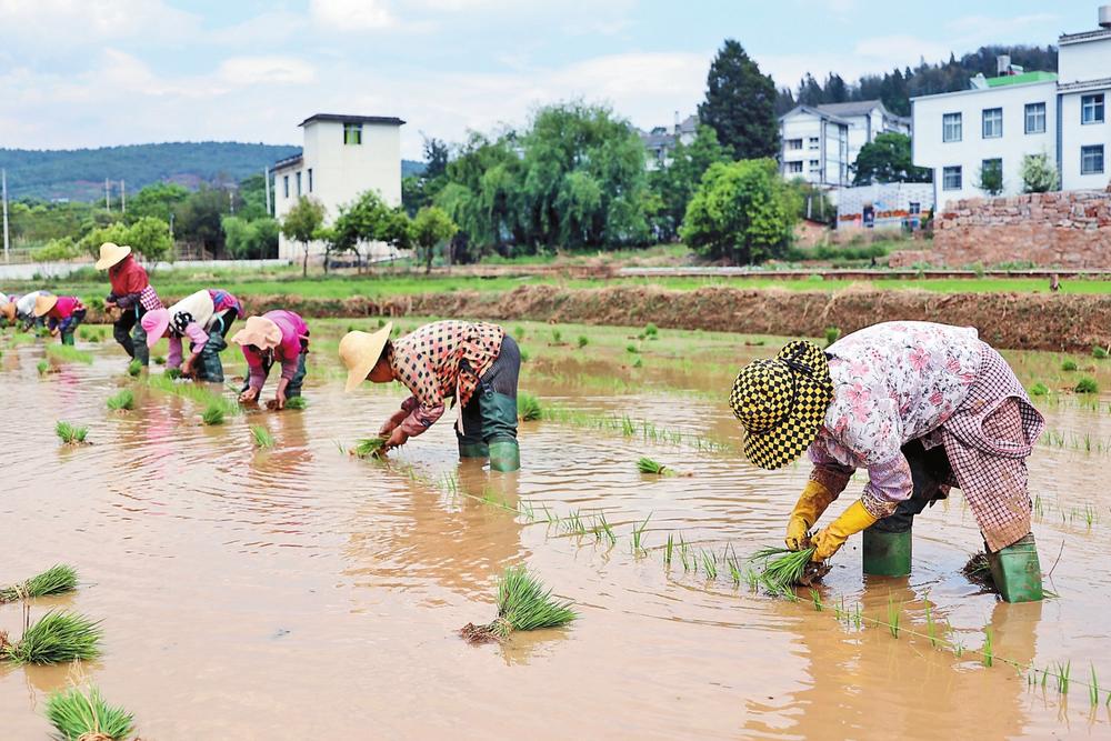 昆明市五华区西翥街道大村社区群众在插秧。记者胡妤雅/摄