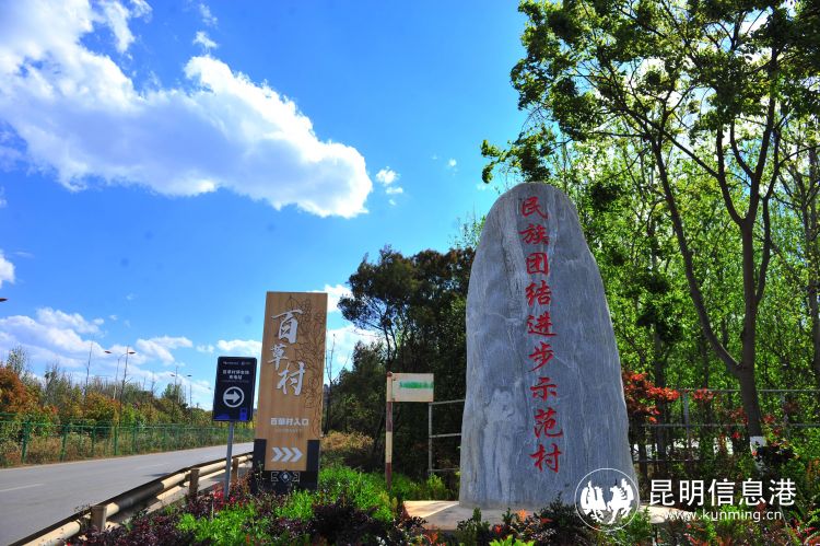西山脚下滇池旁边,有一个美丽的小山村叫百草村,百草百草皆可入药,中国中草药治病救人之原材料,西山百草村村名肯定与故去的云南白药创始人曲焕章老先生密不可分的。现今的百草村,首先映入眼前的是入村高大气派的牌楼和宽敞的百草大道。典型的白族民居特色分明,村中心的小广场精巧漂亮,村三宝之一的龙潭对面的曲氏故居欢迎游客参观。百草村已成为西山区美丽乡村重点示范村和民族团结进步示范村。