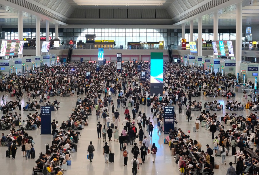From April 27 to May 4, 133 million railway passenger trips were made nationwide, 27.94 million more than during the May Day holiday travel rush in 2019, data from China State Railway Group Co., Ltd. showed.