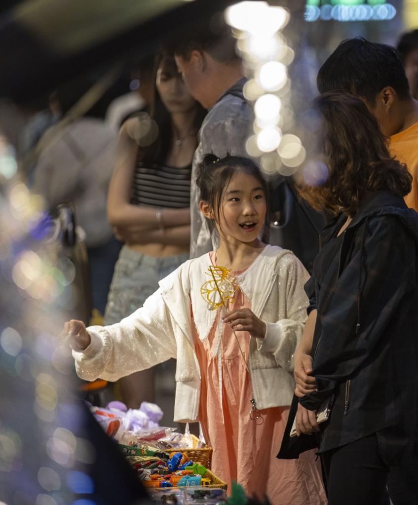 Tourists select goods at a night market in Jinfeng District of Yinchuan, northwest China's Ningxia Hui Autonomous Region, May 2, 2023. (Xinhua/Yang Zhisen)