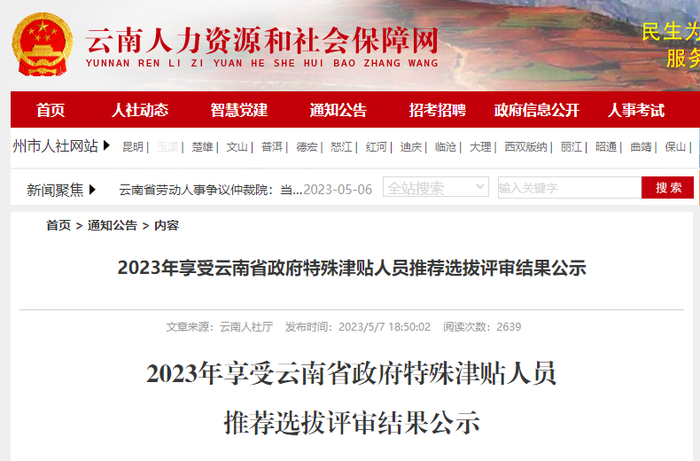 2023年享受云南省政府特殊津贴人员拟推荐人选名单
