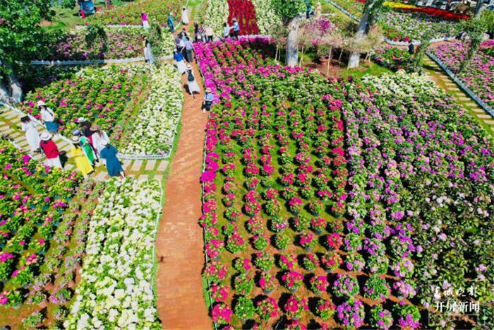 ကူမင်းမြို့ရှိ ဟိုင်ကေဥယျာဉ်တွင် ခြောက်လပန်း ၁၀ မိုသည် ဝေဝေဆာဆာပွင့်ဖူးနေ၍ အလွန်လှပ