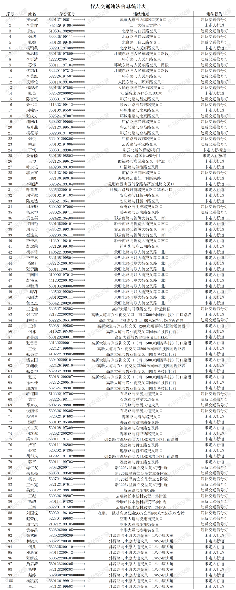 以上违法人员均已受到教育和处罚。(昆明交警)