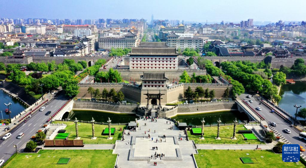 西安城墙永宁门(4月25日摄,无人机照片)。新华社记者刘潇/摄