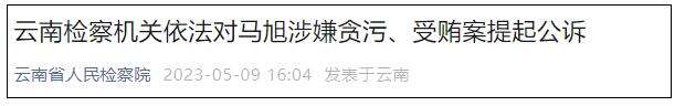 5月9日,记者从云南省人民检察院获悉,云南检察机关依法对马旭涉嫌贪污、受贿案提起公诉,详情如下: