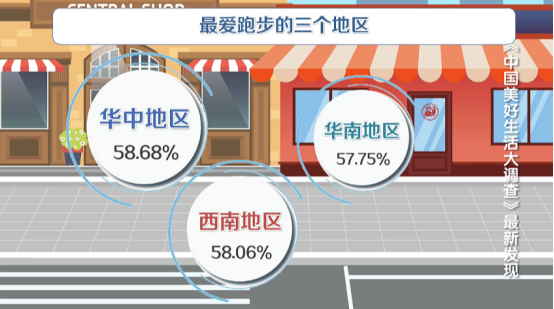 其中,男性对跑步的热衷程度比女性高了近13个百分点(58.61%,45.95%)。