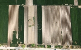 5月9日,在福建宁德三都澳东冲口海域,养殖户从活水运输船上过驳大黄鱼鱼苗,投放至养殖渔排(无人机照片)。