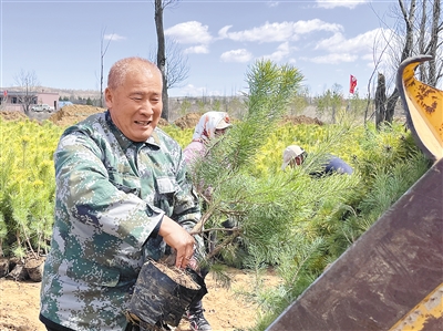 贾道尔吉是伊金霍洛旗人,“我们都吃过风沙的苦。严重的时候,一夜之间沙子堆得比房子都高,没法住了就只能搬家。”提到风沙之患,贾道尔吉记忆犹新,“栽树时我心里就在想,要一直栽,不要停,把这片地都种上树,黄沙就不会再有了。”
