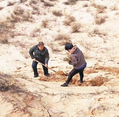 随着风沙的减轻,当地原生沙地柏面积也扩大了。“野生沙地柏能卖钱,那时候偷采的人不少。”刚当上护林员,贾道尔吉就迎来一个不小的难题,“被割过的沙地柏基本上都活不成了。”