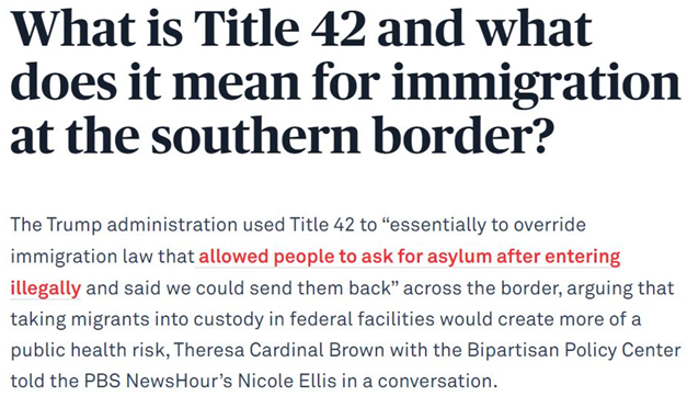 所谓的“42条”,指的是前特朗普政府2020年3月以防控新冠疫情为由、援引《美国法典》第42条款开始实施的非法移民快速驱逐令。