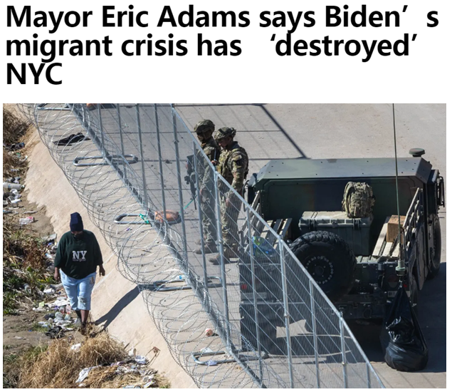《纽约邮报》:纽约市长亚当斯指责拜登政府制造的移民危机已经“摧毁”了纽约